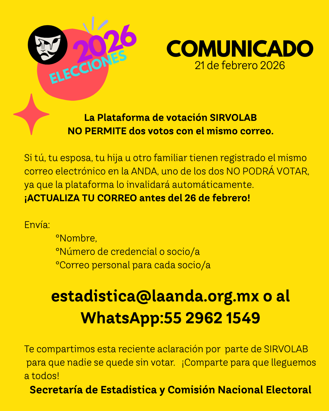 Comunicado: liga de votación y correo electrónico