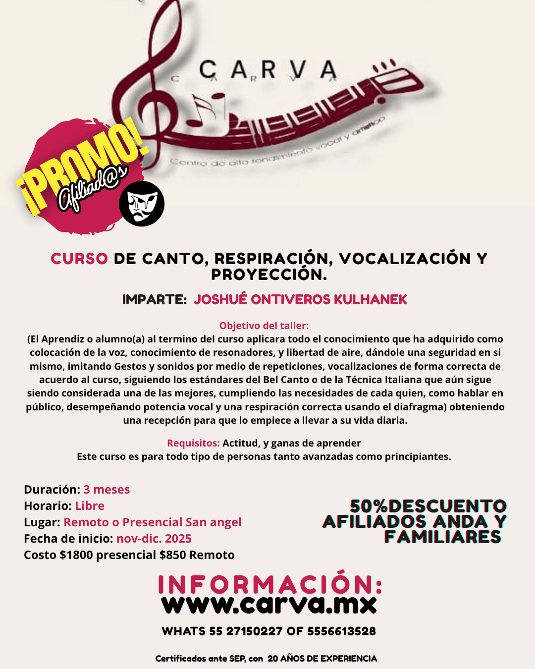 Curso de canto, respiración, vocalización y proyección